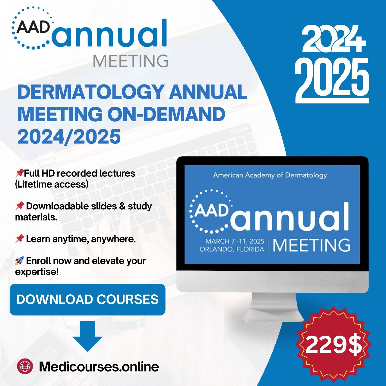 Join us for a unique medical course that provides access to the content from the Dermatology Annual Meetings for 2024 and 2025. This course is specifically designed for professionals in the dermatology field looking to enhance their knowledge and skills by learning from top experts in the industry.